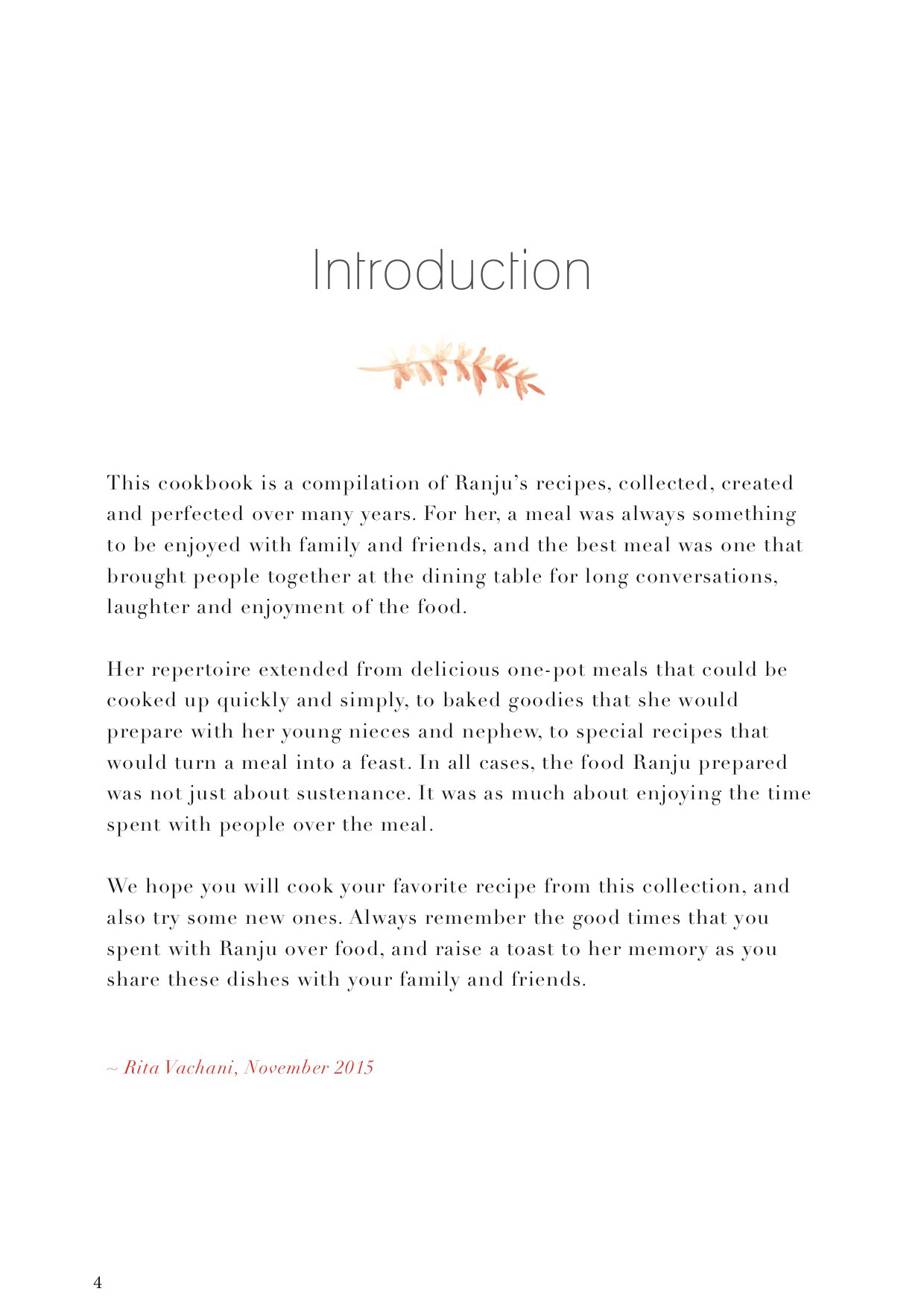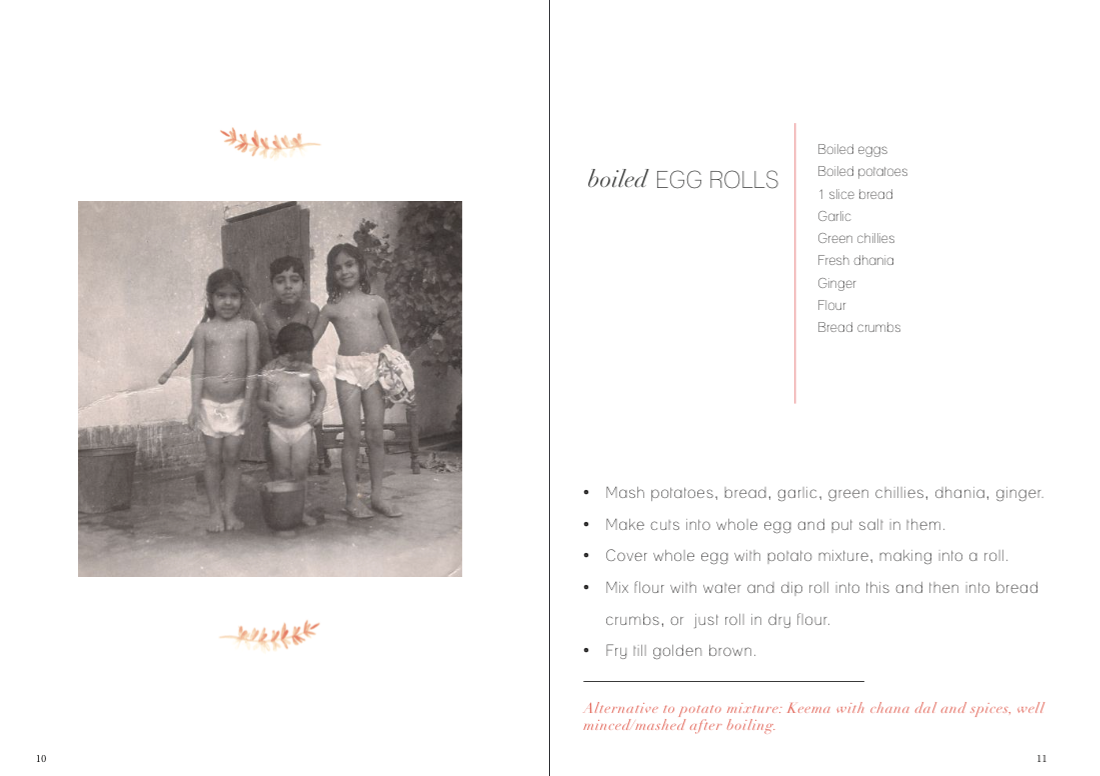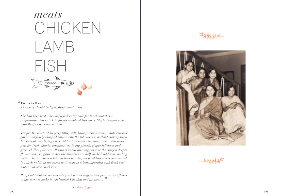Food Memories is compilation of recipes from the personal archives of Reena Mohan in memory of her sister Ranju. The book was designed only for private circulation among family and friends.